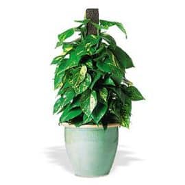 This indoor plant is a great investment. It’s easy to care for and lasts a long time. The typical indoor height is 3′ but has been known to grow upwards of 8′ H. When it gets this large it can safely be transplanted outdoors. It requires medium to bright light and needs to be regularly watered although you need to be careful not to saturate the soil. It absorbs nasty toxins and is especially good for a house that has a smoker. This is a common plant you see in silk versions in offices.